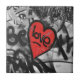 Rot gemaltes Liebeherz auf Graffiti umfaßte Schwarzweiss-Wandhintergrund. Selektive Sättigung.