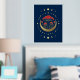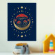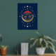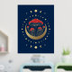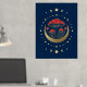 Dekorieren Sie Ihre Wand in Ihrer Zuhause oder im Büro mit diesem Poster aus Gold oder Silber - Zauberpilze aus Rot und Gold, die mit einem Rahmen aus goldenen Punkten verziert sind, und ein Mond aus Goldhalbmond auf dunkelblauem Hintergrund.