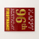 Dieses lustige und einfache Geburtstagsrätsel-Design beinhaltet die Nachricht "HAPPY 96. BIRTHDAY", mit dem "96.", das ein goldfarbenes Imitat/Imitation hat. Es enthält auch einen personalisierten Namen und einen roten Hintergrund. Es könnte eine lustige und besondere Art sein, jemandem, der seinen sechsundneunzigsten Geburtstag feiert, einen personalisierten Geburtstag zu schenken. [~Z0000200]