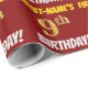 Dieses Packpapier-Design enthält eine Nachricht wie "9. BIRTHTAG DES ERSTEN NAMENS!", mit dem "9." mit einem goldfarbigen Imitat/Imitation und mit dem Namen und "BIRTHDAY" in einem lustigen, kühlen Schriftart. Der Name kann personalisiert sein, der Hintergrund ist rot. Papier wie dieses könnte vielleicht benutzt werden, um Geburtstagsgeschenke zu verpacken, die jemandem zur Feier seines neunten Geburtstages gegeben werden. [~Z0000204]