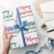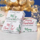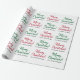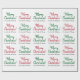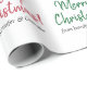 Dieses typografische Weihnachtsgeflechtpapier-Design zeigt ein rotes oder grünes "Frohe Weihnachten!"-Muster, in dem Botschaften in handschriftlich inspiriertem Text begrüßt werden. Es enthält auch personalisierte Namen, und könnte vielleicht als eine lustige Art verwendet werden, Geschenke zu packen, die in Feiern von Weihnachten gegeben werden.