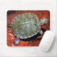 Bild einer rot-ohrigen Schildkröte, die auf rotem Lavafelsen sich aalt