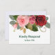 Diese RSVP-Karte weist einen oberen Rand von atemberaubendem Rosa und rote Rosen auf, eingebettet in grüne Blätter. Die Rose und Blätter sind erstaunlich realistisch, aber eigentlich sind sie Kunstwerke. Unter dem Rose-Bild befindet sich der benutzerdefinierte Text in dunkelgrün. Die Bilder und der Text werden auf einem weißen Hintergrund platziert. Auf der Rückseite der Einladung befinden sich mehr benutzerdefinierte Textfelder. Schauen Sie sich die passenden Einladungen für Hochzeiten in unserem Shop an.