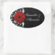 Rot, Schwarz und Weiß Scroll Gerbera Daisy Ovaler Aufkleber