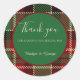 Diese Hochzeit danke Ihnen Aufkleber kommt in verschiedenen Größen, Formen und Papieren. Es ist mit Ihren Intros, Namen und Monogrammen anpassbar. Es zeigt eine harmonische Mischung aus einem grünen schwarzen schwarzen Schottenmuster und hat passende hellgrüne Farben und weiße Typografie. Das minimale runde grüne Overlay mit bordeauxfarbenem Rand dient Ihrer Anpassung. Hobinishop