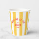 Meet Me At The Beach Papiertassen sind perfekt für Ihre Ansammlungen im Sommer im Garten, am Pool oder am Strand... Gelbe Cabana-Streifen mit rot bedrückten individuellen Strandbriefen. Personalisieren Sie die Details Ihrer Ansammlung... Jahr und Strand Ziel. Ideal für einen Strandausflug mit Familie oder Freunden, Beachparty oder Beach Club Bachelorette. Matching Accessoires in der Meet Me in der Beach Yellow Cabana Stripe Collection.