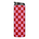 Abstrakte digitale Kunst von roten und heißen rosa Quadraten in einer karierten Formation. Mit der Möglichkeit, die rosa Quadrate zu ändern, indem Sie die Hintergrundfarbe so ändern, dass sie den roten Quadraten entspricht.