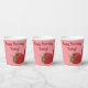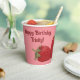 Fügen Sie jedem Party mit personalisierten Papiertassen eine süße Touch hinzu. In diesen Bechern finden sich Abbildungen von reifen roten Erdbeeren Set vor einem rosa Hintergrund. Ihr eigener Text erscheint in fett, dunkelrot.