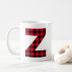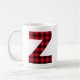 Ein kühner, moderner Schriftart Buchstabe Z mit einem traditionellen Lumberjack Buffalo karierten Karo Muster Overlay. Sie können Ihre eigenen Urlaubsgeschenke für die Familie erstellen, indem Sie das Design auf andere Geschenke übertragen oder das Bild mit Ihrem eigenen Foto ersetzen. Passen Sie diese Monogramm-Kaffeetasse mit einem Familiennamen oder einem anderen Text an.