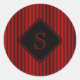 Rot und schwarz, feine Streifen, monogramm Runder Aufkleber