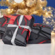 Umschlagpapier von roten und schwarzen rechteckigen Geschenken!
