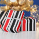 Dieses Verpackungspapier ist mit roten und schwarzen Streifen bedeckt. Gut für viele Anlässe.