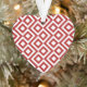 Dieses geometrische Muster in Rot und Weiß ist ein originelles Dekorationsdesign. Weiße Mäander drehen um rote Diamanten mit weißen Diamanten. Rote Zickzackgassen sorgen für eine feine Trennung zwischen den gewundenen Pfaden. Digitales 9000 x 6000 Pixel Bild. Copyright ©2013 Claire E. Skinner, Alle Rechte vorbehalten.