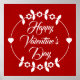 Schlichtes, elegantes und einfaches Valentinposter in Rot und Weiß. In der Mitte ist die Nachricht Happy Valentine's Day in White Script. Oben und unterhalb der Schrift sind weiße Blume mit roten Mittelpunkten und weißen Blätter.