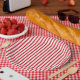 Rot-weiß gestreiftes Design für ein niedliches, modernes und elegantes nautisches Thema.