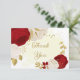Romantische dunkelrote und weiße Blume mit goldenen Blätter botanische Hochzeit danke Ihnen Karte. Die Einzelheiten des Glitzer werden simuliert.