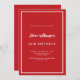 Modernes, elegantes und einladendes Hotel. Ein roter Hintergrund mit weißem Rahmen. Personalisieren und fügen Sie einen Namen und Details. Weißer Text.