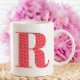 Rot-Weiß-Polka-Dot-Monogramm Kaffeetasse