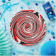 Rot-weiß-schwarz-psychedelisch gestaltete Papiertafel
