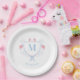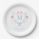 Rot, Weiß und Blau 4. Juli Monogramm Wappen Pappteller