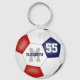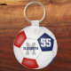 Der sportliche Schlüsselanhänger für Jungs und Mädchen ist mit einem klassischen Fußball-Ball mit roten, weißen und blauen Paneelen ausgestattet. Der Name, die Monogrammnummer und die Trikotnummer des Spielers werden von katz_d_zynes angepasst