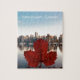Skyline von Vancouver Kanada mit einem schönen Rotahornblatt infront.