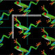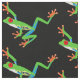 Roter Augenteiliger Frosch auf schwarzem Stoff