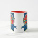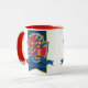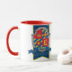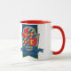 Ethan Name bedeutet Schild rot blauen Jungen Tasse. Wappen-Schild mit monografischer E-Tasse für königliche Kronenritter im Stil Galiciens, perfekt für Kinder und Jugendliche in Rot-, Blau-, Grau- und Gelbtönen. Personalisieren Sie mit Ihrem eigenen Namen, beginnend mit E und Name Bedeutung oder eine Nachricht oder Betreff für eine personalisierte Touch. Liest Ethan Strong und resolute. Impulsiv, freundlich und langlebig. Andere Namen sind auf Tasse und anderen passenden Produkten erhältlich. Einzigartiges königliches Wappen zeichnend, mit Löwen-Kopf, Krone, Stern und Initial-Monogramm E-Brief, Grafik und Design von Sarah Trett www.sarahtrett.com für www.mylittleeden.com