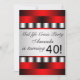 Die personalisierte Party Einladung von Rot und Schwarz zum 40. Geburtstag. Personalisieren Sie die Vorderseite und passen Sie die Rückseite an, indem Sie zwischen Schriftart und Schriftart sowie der Hintergrundfarbe auf der Rückseite wählen.