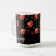 Rote Äpfel und Blätter auf schwarz Kaffeetasse