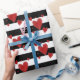 Dieses Valentinstagpapier kennzeichnet rote Aquarellherzen ganz vorbei mit Schwarzweiss-Streifen.