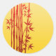Rote Bambusstäbe mit Blätter auf Gelb Runder Aufkleber