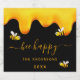 Ein schicker schwarzer Hintergrund mit goldtropfendem Honig. Der Text: Bee Happy mit einem goldenen handgeschriebenen Stil Skript mit Swashes. Personalisieren und fügen Sie Ihren Namen, Familiennamen. Für Party, Hochzeiten, GRILLEN im Hinterhof.