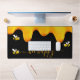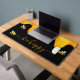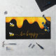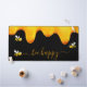 Ein schicker schwarzer Hintergrund mit goldtropfendem Honig. Der Text: Bee Happy mit einem goldenen handgeschriebenen Stil Skript mit Swashes.