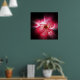 klare rote Blütenblätter glitzern auf dunklem Hintergrund