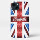 Personalisieren Sie Imitate funkelnd mädchenhafte iPhone Gehäuse mit Ihrem Namen. Funkelnd britische Flagge in rot-blauen Imitat Glitzern Glitzer. Wir verwenden Foto von Glitzern und nicht von tatsächlichen Glitzer.