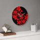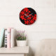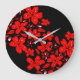 Stilvolle rote Blume und Blätter auf schwarzem Hintergrund.