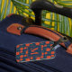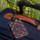 Rote Blume Muster Dunkelblaues Monogramm Gepäckanhänger