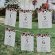 Fügen Sie Ihrer Hochzeitsfeier eine persönliche Touch mit diesen stilvollen und unvergesslichen Party hinzu! Das Design ist bordeauxrot, rot und lila, Aquarellfarben, Blume und Grün auf weißem Hintergrund.
