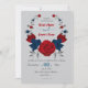 Romantische Rot- und Marineblumen und graue Blätter Blumenkranz Einladung zur Hochzeit