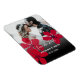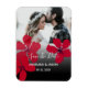 Einfache, elegante, moderne kalligraphische Skript Schwarz-Weiß Hochzeit speichern das Datum Einladung Magnet mit Foto und roten Aquarell-Blume.