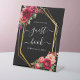 Eleganter, dunkelroter Bordeaux und schwarze Hochzeitsschilder mit schönen Blume und grünen Blätter. Eine bezaubernde Mischung aus Eleganz und gotischem Charme. Diese wunderschönen Einladungen sind in schwarz und rot gehalten. Die Kalligraphie ist elegant und schick und lässt sich leicht anpassen. Romantische und moderne blumengeschmückte Hochzeitsfeiern mit klassischen Farben, die nie aus dem Stil verschwinden.