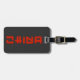 Rote China Gepäckanhänger in Schwarz und Rot mit individuelle Name und Telefonnummer auf der Rückseite in weißem Text.