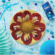 Rote Collarette Dahlia auf der Gelben Flora Pappteller