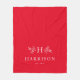 Als koordinierendes Stück der Rustic Monogram Kollektion von Lea Delaveris Design weist diese Decke einen lebendigen und festlichen roten Hintergrund mit einem Monogramm, umgeben von Zweigen, einem Nachnamen und festem Datum auf. Matching Kissen vorhanden.