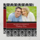 Kundenspezifische Fotoeinladungen der eleganten Hochzeitsversprechen-Erneuerung im Rot, Schwarzweiss-Blumendamastmuster mit völlig kundengerechtem Text, Ihre Versprechenerneuerungs-Zeremoniedetails einzuschließen.