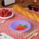 Sehr Juicy Red Strawberry auf lila Hintergrund. Pop Art.