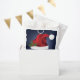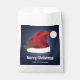 Rote festliche Weihnachtsmannmütze auf Blau mit be Geschenktütchen