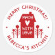 Ein personalisierter Aufkleber "made with Liebe" mit einem niedlichen kleinen, roten Haus mit Herz und Liebe. Personalisieren Sie es, indem Sie Ihren eigenen Namen hinzufügen. Eine hübsche Touch für all Ihre hausgemachten Weihnachtsgeschenke. Entworfen für Sie von BlackBerry Boulevard.
