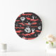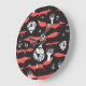 Rote Füchse: Dunkler Hintergrund Nahtlos. Große Wanduhr